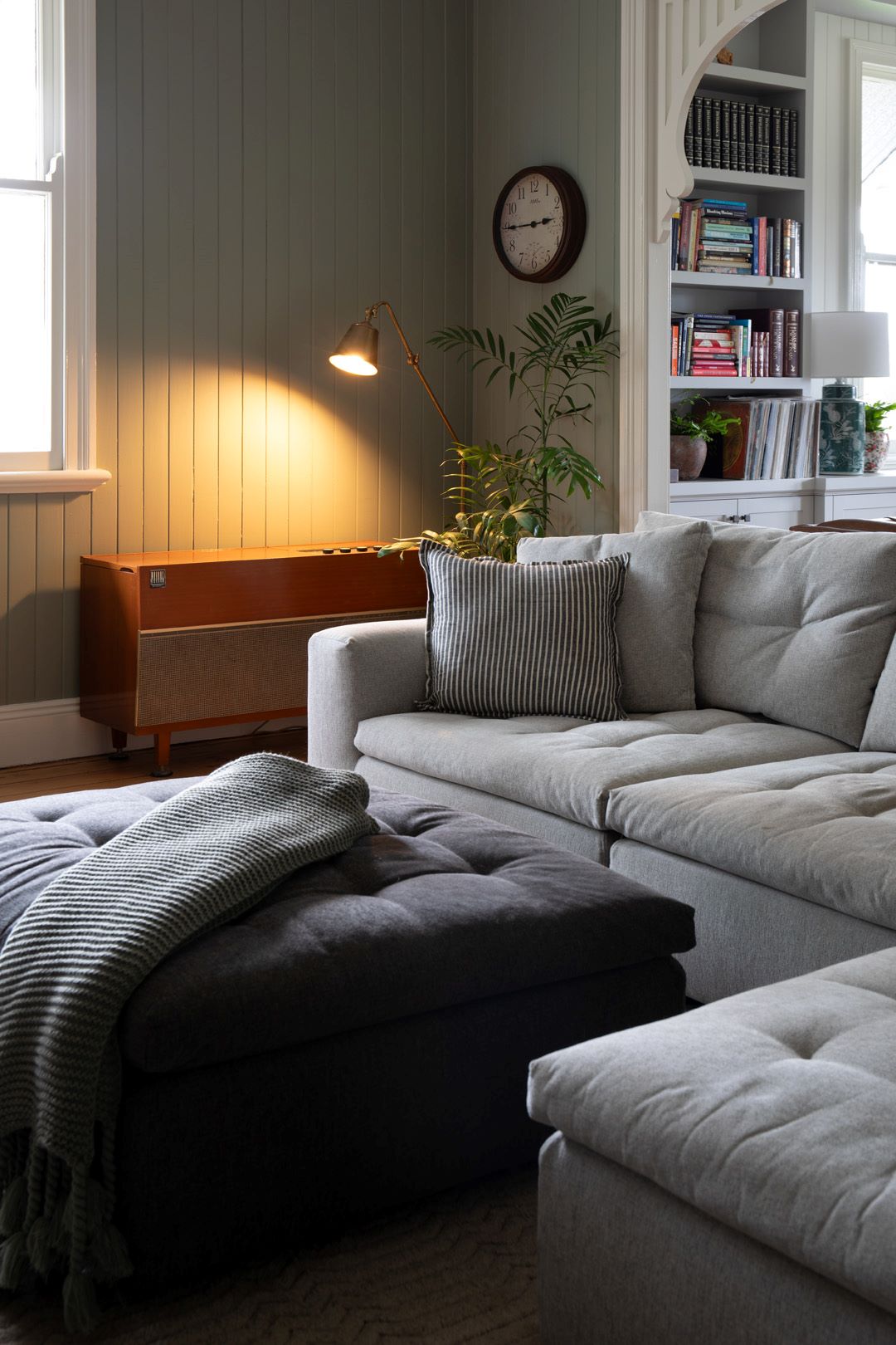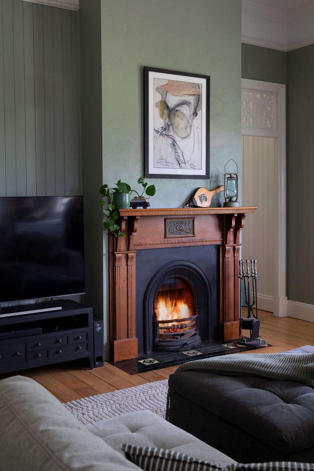 This couple didn’t supply any Pinterest inspiration images as they don’t use social media. Instead, the home design was guided by a treasured artwork of Hunter S Thompson, an inherited 1950’s record player, a love of whiskey and books and of course the architecture, history and location of the home. I imagined this couple and their home having all the sharpness of a perfect Model T Ford with whiskey in the trunk on the way to a swanky 1920’s party.