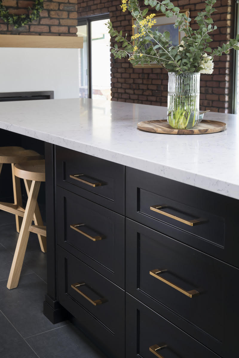 The interior palette strikes a careful balance between heritage and modernity. Black accents enhance the warmth of the red brick and natural timber ceilings, while white subway tiles and crisp benchtops introduce freshness and light.